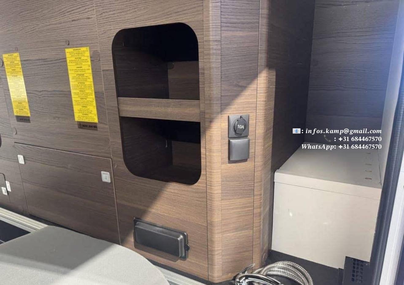 Grande soute traversante avec prises 12V & 230V