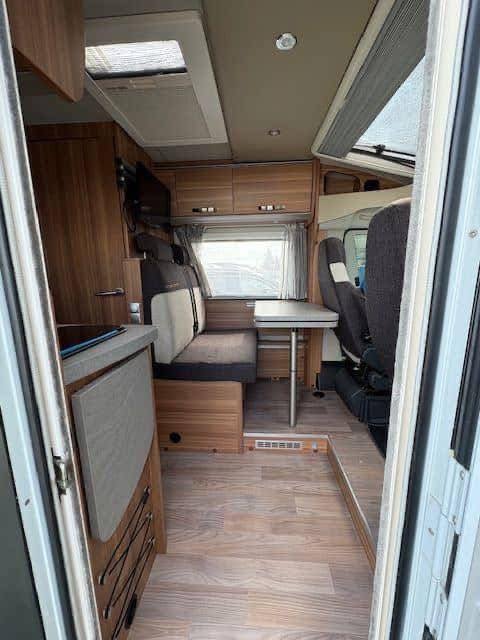 Résumé du véhicule : Bobil compact mais spacieux, parfaitement adapté pour la route comme pour les petites aires Carrosserie totalement recouverte d’un film noir mat (couleur d’origine : blanc) Moteur 2.0L diesel – 163 ch – Boîte manuelle Seulement 67.000 km – Véhicule en excellent état Véritable compromis entre fourgon et camping-car profilé Garantie incluse – Prêt à partir