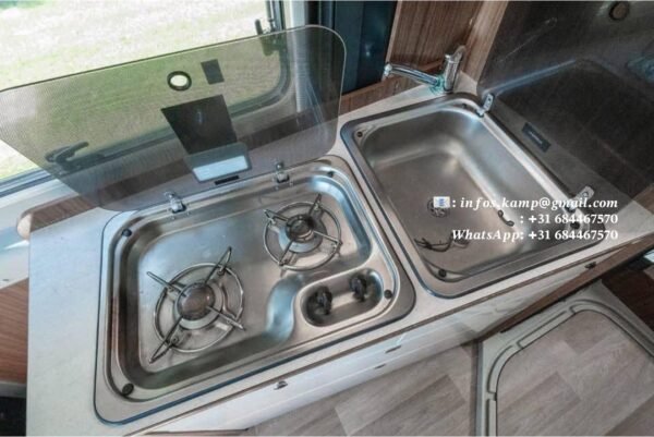 • Évier inox + 2 feux gaz