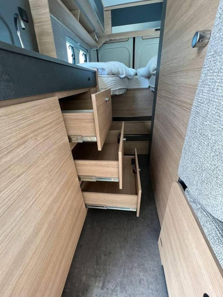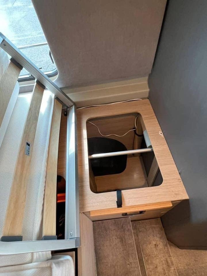 • Nombreux rangements intelligents (au-dessus du lit, du coin cuisine et du salon)